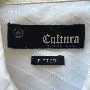 Cultura Men’s Fitted Dress Shirt Sz M White Stripe Suit Classic Formal Staple Button Down