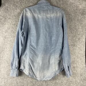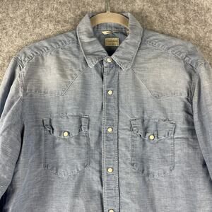 Culturata Linen Blend Western Shirt Men Large 16.5 42 Blue Faded Pearl Snap Itay