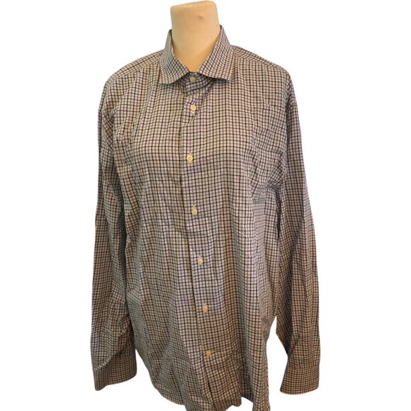 Culturata Dress Shirt, Men's XXL (18.5) Blue Plaid Tailored Fit, Made In Italy. This Culturata dress shirt features a classic plaid pattern with a combination of white and blue lines. It has a traditional button-up design with a standard point collar. Made in Italy. The fabric is lightweight and breathable, made from high-quality cotton. Retails for $195. Excellent condition.