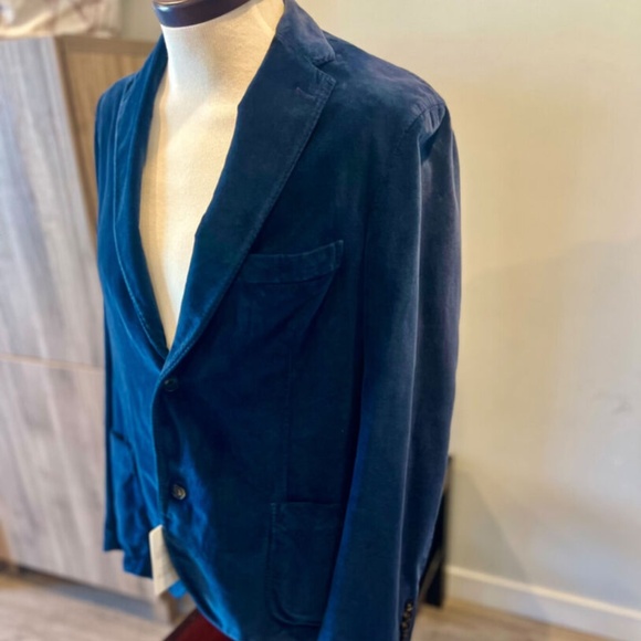 Elevate your wardrobe with this Culturata unstructured corduroy blazer, made in Italy. This mid-length blazer features a solid navy pattern with button closure and an athletic fit that flatters any body type. The blazer is crafted from high-quality cotton and lined with polyester for added comfort. Perfect for any occasion, whether it be for business, formal events, or casual outings, this blazer is a versatile addition to your wardrobe. The blazer is handmade with exceptional attention to detail, making it a unique and stylish choice for any fashion-conscious man. Upgrade your style with this Culturata blazer made in Italy today!