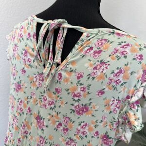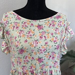Culture Code Light Green Floral Ruffle Accent Baby Doll Mini Dress Size Large