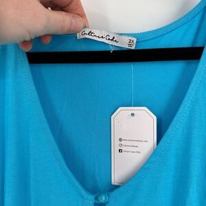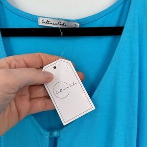 Culture Code Women's Tiered Button Front Racerback Midi Dress Blue Size 2X NWT