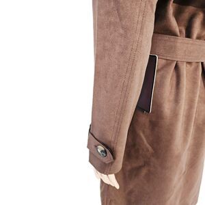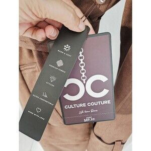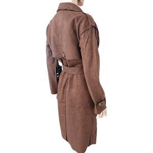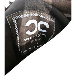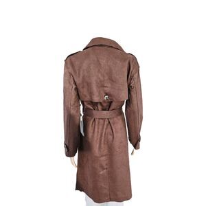 The Culture CULTURE Jacket is a stylish women's size small long coat made from faux leather in a rich brown color. This gabardina style jacket is perfect for adding a touch of sophistication to your wardrobe. The brand, CULTURE, ensures quality and attention to detail in this fashionable outerwear piece that is sure to make a statement.