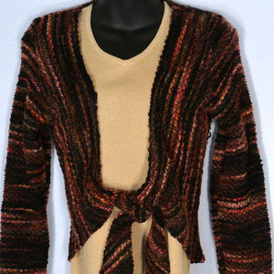 Culture NYC Wool Blend Shrug SMALL Front Tie Black Multicolor Striped Sweater