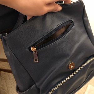 BRAND NEW WITHOUT TAGS Culture Riot Backpack in navy faux leather with gold hardware. Great for everyday use. Magnetic button closure. Multiple pockets inside and outside. Smoke free home. Straps are removable. Comes with dust bag.