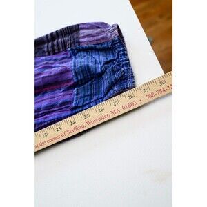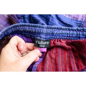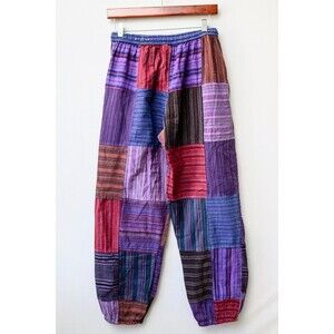 The Culture Shop Cotton patchwork boho pants in size S are perfect for a hippie festival or casual outing. Made of comfortable cotton material, these multicolor pants feature a harem style with a flat front design. The boho and hippie theme adds a unique flair to your outfit, making you stand out from the crowd. Pair these pants with a simple top and sandals for a relaxed and stylish look.