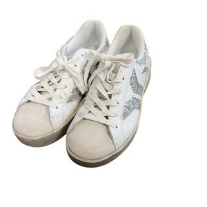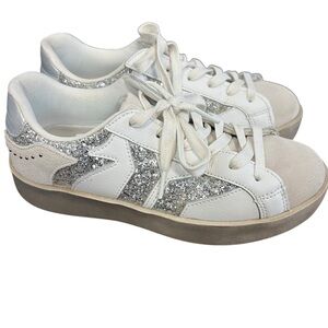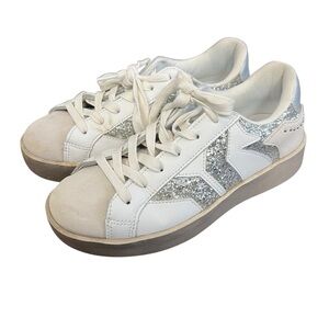 Culture of Brave C.O.B Play Leather Sneaker in Silver with Glitter Wing in size 7-7.5.