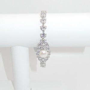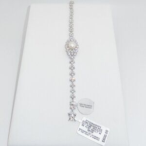 Cultured Freshwater Pearl & Swarovski Cubic Zirconia Link Bracelet