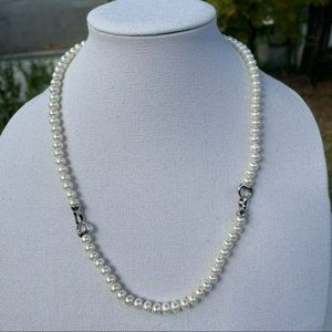 White Cultured Freshwater Pearl Necklace And Bracelet Set With Heart Shaped 925S Clasp