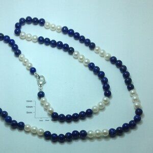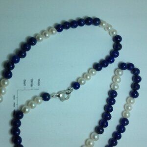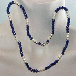 24" long, 6mm+/- Cultured Pearls and Lapis Beads Necklace.