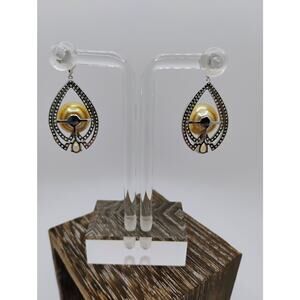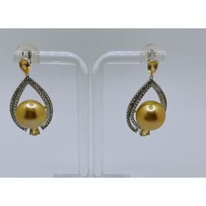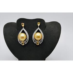 Beautiful Gold Pearl Earrings with Citrine and Topaz accents in a Rhodium finished 925 Sterling Silver. These earrings are a statement that will stand out with any outfit.