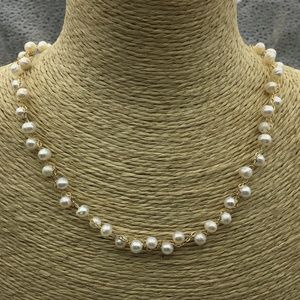 This necklace is made of white cultured pearls that measure 4-5mm in size.