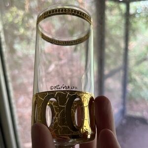 Culver Antigua gold plated glass. Glass is stemmed. In good condition, some scratches and wear as shown.