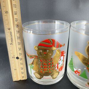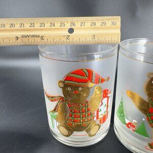 Culver Gold Bear Frosted Christmas Tumbler Glasses Set 2 Vintage Barware Glass