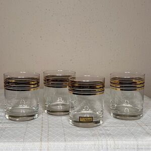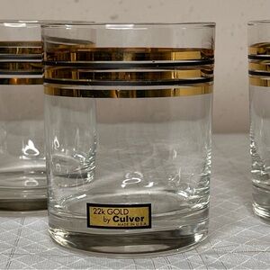 Culver Gold and Black 3 Striped MCM Glasses 4 piece Set