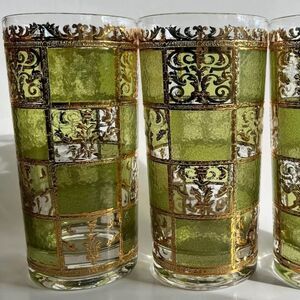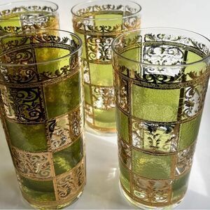 Culver Prado Mid Century 22kt Gold Green Highball Glasses set of 5