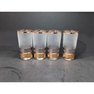 Culver Regency Highball Glasses, Set of 4, VTG MCM Tumblers, 12 Oz Frosted Gold