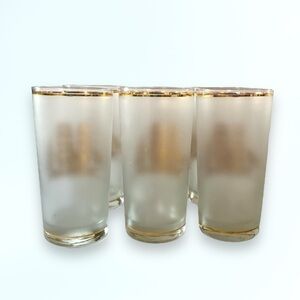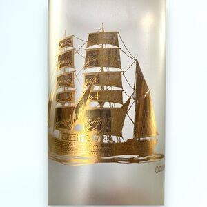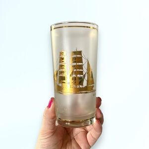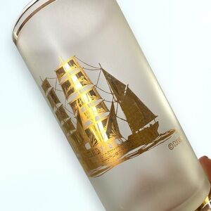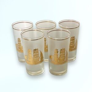 Culver Vintage 22k Gold Schooner Ship Frosted HighBall Glassware Bar SET OF 5
