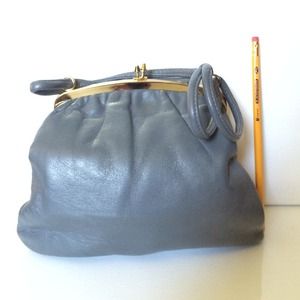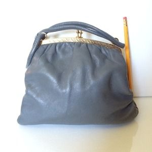 Sweet and simple grey leather/ette is a perfect size to fit all your goodies and for day to evening wear. Please note the pencil is for scale. One tiny discoloration on the body but otherwise perfect! #fancypoints