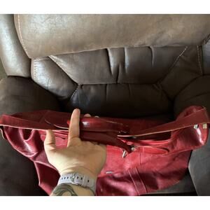 Leather brick red huge tote bag purse