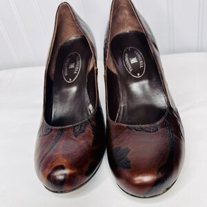 Cuoieria Fiorentina Italy Tuscan Sz 8.5 Heels Chocolate Brown Leather Floral