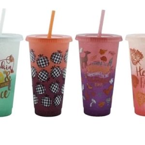 Color changing to different shade of green ,plastic,25oz,Tumbler,straw,lid,new never used,no tag.