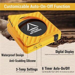 -Coffee Mug Warmer with 3-Tem Settings -- The coffee warmer for desk keeps the coffee as hot as you want it to be. There are 3 temperature settings: 170℉/150℉/130℉. You can choose the temperature you want by touching the “Power Button”. With the cup warmer, keeping the drinks warm/hot is no problem.