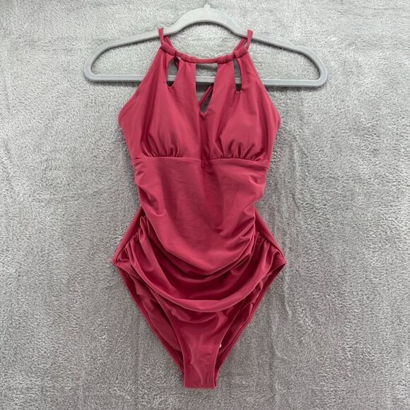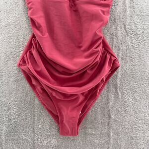 CupShe Swimsuit Women L Soft Red One Piece Halter Key Hole Padded