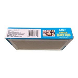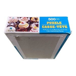 I have for sale a brand new Cupcake 500 Piece Jigsaw Puzzle that measures 18.25 X 11 and is made by Greenbrier International Inc. There is a stain on the back of the box. If you have any questions, please ask. I do combine shipping. Check out my other items.