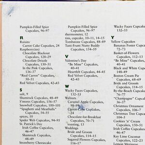 Baker's Field Guide to cupcakes. Hidden spiral bound hardback book with over 60 cupcake recipes, for holidays, every day, and special occasion. There are 15 master recipes for the cake batter and then easy to follow instructions for the creativity. There are color photographs of every recipe (see some of the cupcakes in photos above). Very clear and easy instructions, along with tips along the way. There is an index and measurement equivalent chart. Very good overall condition All pages are clean and intact. No writing or dogeared pages. Spiral spine is good. There are a few ink smudes on the last page of the index (see photo).