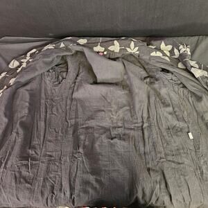 Add a unique piece to your wardrobe with this Cupcake International ginkgo leaf jacket! This art-to-wear jacket is perfect for casual outings and making a statement. This is missing two buttons. It has two pockets at the waist. It is an oversized jacket.
