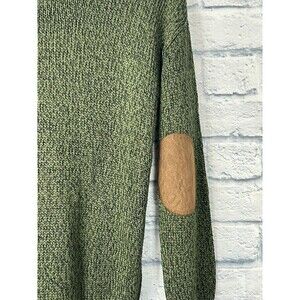 Cupcake Womens Size M Army Green Sweater V Neck Elbow Patch Side Slits Cozy T4