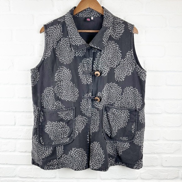 Cupcake dahlia print vest lagenlook pockets Black size Large