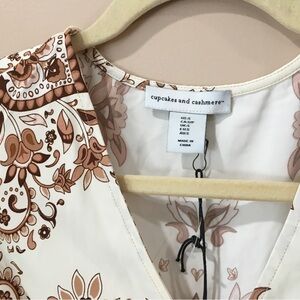 Cupcake&cashmere Womens size S Paisley printed Top Flare Sleeve Brown White New