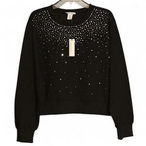 Cupcakes And Cashmere Black Rhinestone Sweatshirt Size L Embellished Sparkle NWT