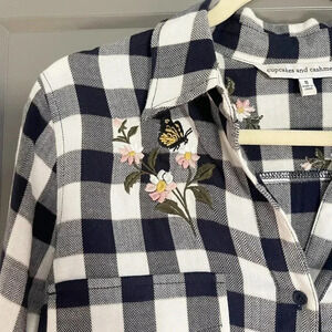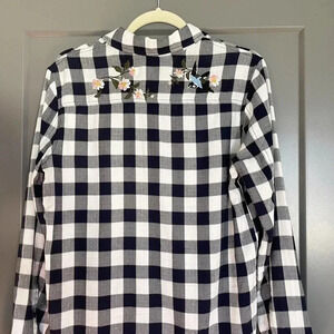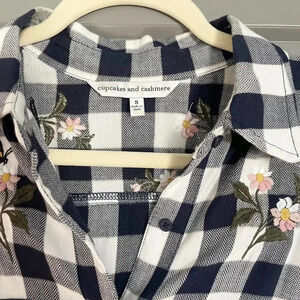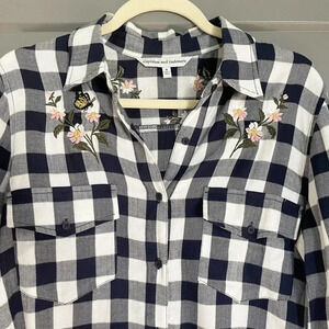 Cupcakes And Cashmere Check Floral Embroidery Collared Button Down Shirt Small