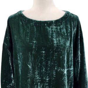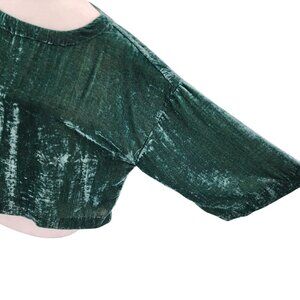 Pullover style boat neck boxy blouse top - shade of green. Made of a soft crushed velvet fabric. 3/4 length relaxed / wide sleeves. 75% Viscose & 25% Nylon. Party, cocktail, going out, holidays, dressy casual, Cupcakes & Cashmere