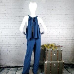 -Features: Cupcakes and Cashmere jumpsuit, halter top, sleeveless, ruffle bodice, open back, elastic waist, flowy coastal, wide, straight leg