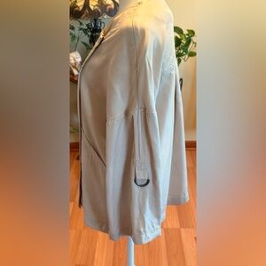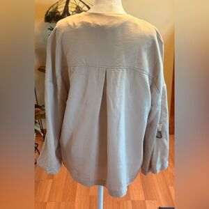 This cream jacket from cupcakes & cashmere features a sophisticated draped collar and an asymmetrical front design. Crafted from a soft material, it offers a comfortable yet chic fit, making it a versatile addition to any wardrobe. The oversized fit and lightweight design make it comfortable and on-trend, suitable for the summer, fall, and spring seasons. Hand wash only to preserve the quality of this chic addition to any woman's wardrobe.