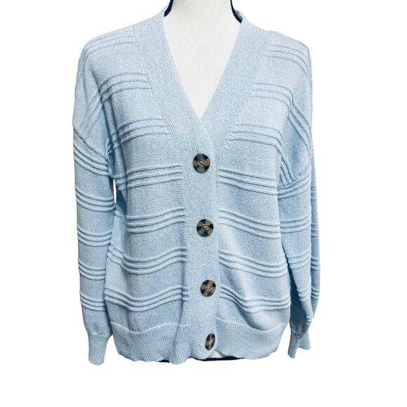 Cupcakes And Cashmere V-Neck Button Cardigan Sweater Light Blue Women’s Sz M
