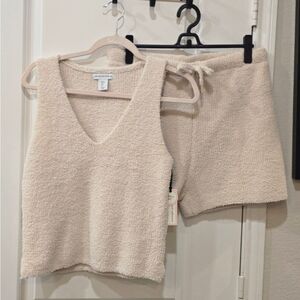 Cozy cream knit set by Cupcakes and Cashmere. Includes a sleeveless top and shorts.