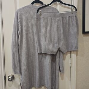 Soft and stylish pajama set by cupcakes & cashmere. Includes a cozy top, shorts, and cardigan. Ideal for relaxing at home.