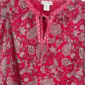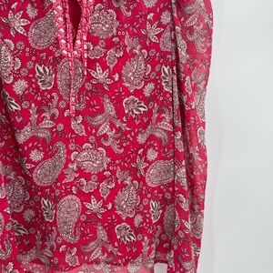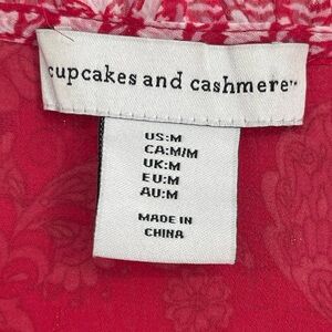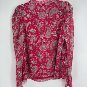 Cupcakes & Cashmere Blouse Paisley Top Red Puff Sleeve Tie Neck Blouse Sz Medium