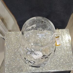 Chic vase with black and silver ribbon accents. Adds elegance to any space.