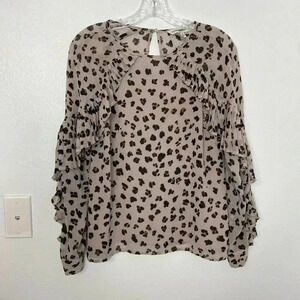 Cupcakes and Cashmere Deen Leopard-Print Top with Pleated Trim