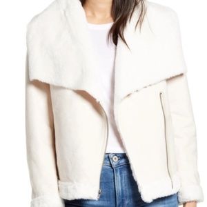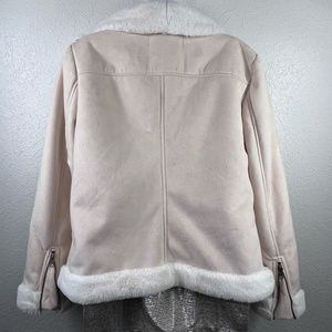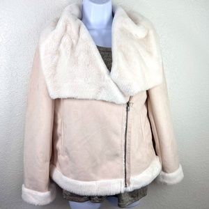 Cupcakes & Cashmere Faux Suede & Fleece Draped neck Moto Jacket, S