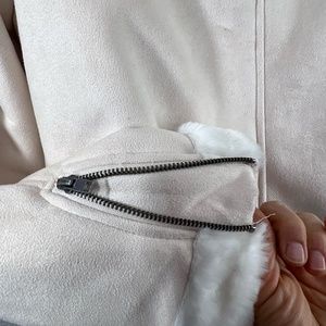 If you are looking to be ultra cozy and comfortable while looking absolutely fly, this is going to be your jacket. To say the inside is soft, is an understatement. The fur inside this piece will make you want it hugging your body, all, day, long. It is beyond soft. The brushed faux suede exterior has a soft champagne color with an off-set zipper. The zippered cuffs add an additional splash of style. It does have pockets to keep necessities at hand. Did I mention how soft this amazing piece is?? Grab it and stay warm! Enjoy the season!
