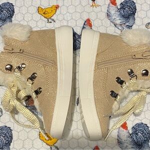 Cupcakes & Cashmere Faux fur shimmer gold high top sneaker NWOT