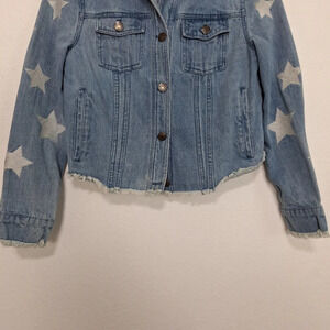 Cupcakes & Cashmere Grunge Affleck Embroidered Stars Frayed Denim Jacket Size S
