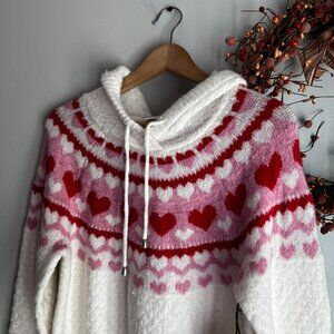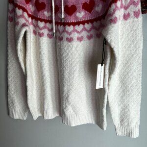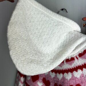 Cupcakes & Cashmere Heart Print Hooded Soft Lightweight Sweater MEDIUM White Pink